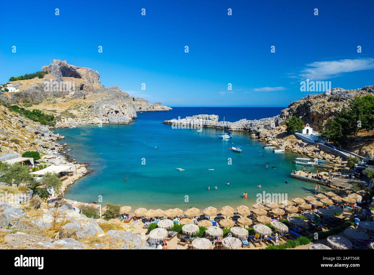 Overlooking The Stunning St Pauls Bay Lindos Rhodes Island Greece Europe Stock Photo Alamy www.alamy.com